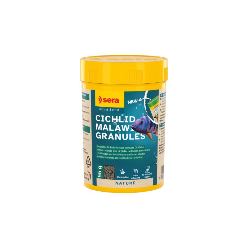 sera Granugreen est l’aliment composé à base de granulés fabriqués selon un procédé spécial pour les petits Cichlidés principalement herbivores et mangeurs d’algues - et compris un grand nombre d’espèces de Cichlidés d’Afrique orientale.