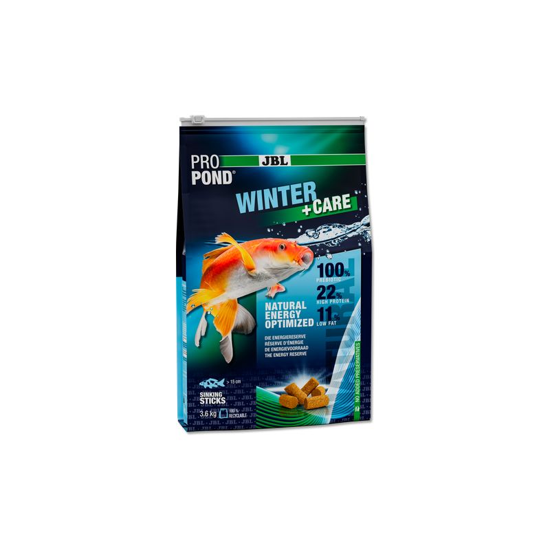 Bâtonnets alimentaires coulants avec une composition adaptée à la saison la plus froide, contenant 22 % de protéines, 11 % de lipides, 2 % de fibres brutes et 6 % de cendres brutes. Sans colorants ni conservateurs