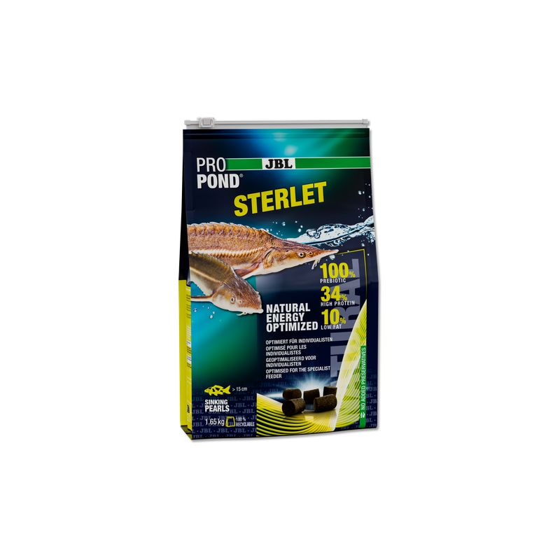 • Composition spécifiquement adaptée aux esturgeons, qui cherchent leurs proies au fond de l’eau (température d'eau de 10 à 25 °C)