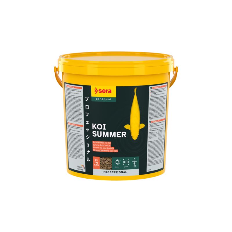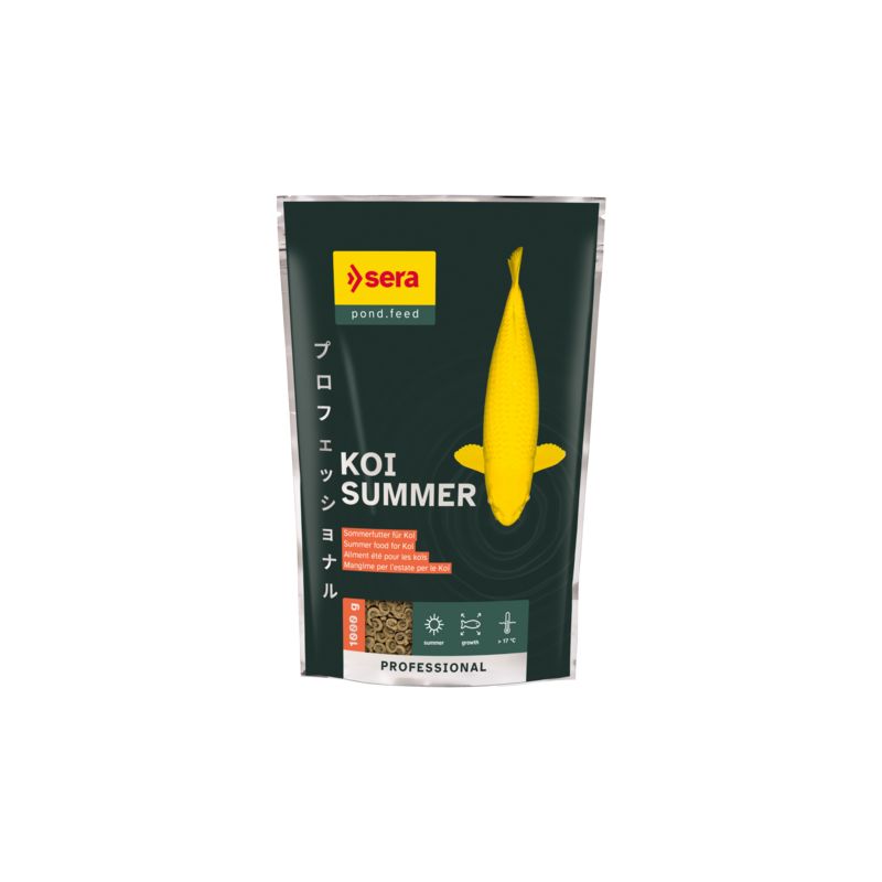 Koi Professional Summer a été spécialement conçu pour répondre aux besoins des koïs lorsque la température de l'eau est supérieure à 17°C. Il possède un rapport équilibré entre les protéines, les matières grasses et les glucides, assurant ainsi une croissance vigoureuse et saine ainsi qu'un apport optimal en énergie.