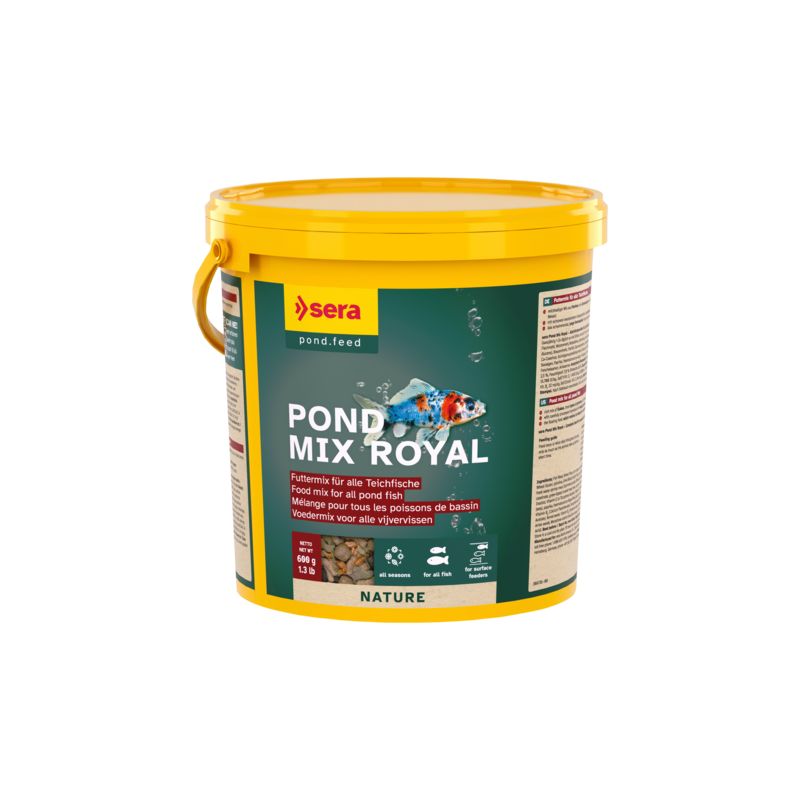Pond Mix Royal est l’aliment composé à base de flocons, granulés et gammares entiers fabriqués selon un procédé spécial, pour l’alimentation tout au long de l’année dans les bassins à population mixte.