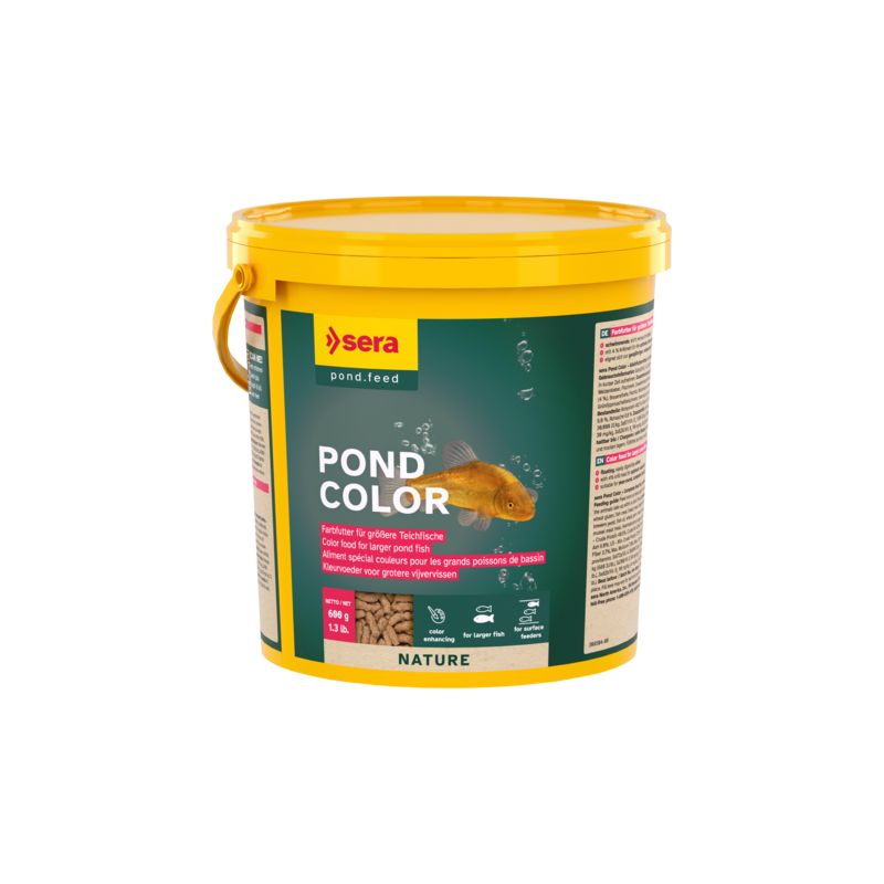 Pond Color est l’aliment spécial couleurs à base de granulés fabriqués selon un procédé spécial, sans colorants ni conservateurs, pour les poissons de bassin.