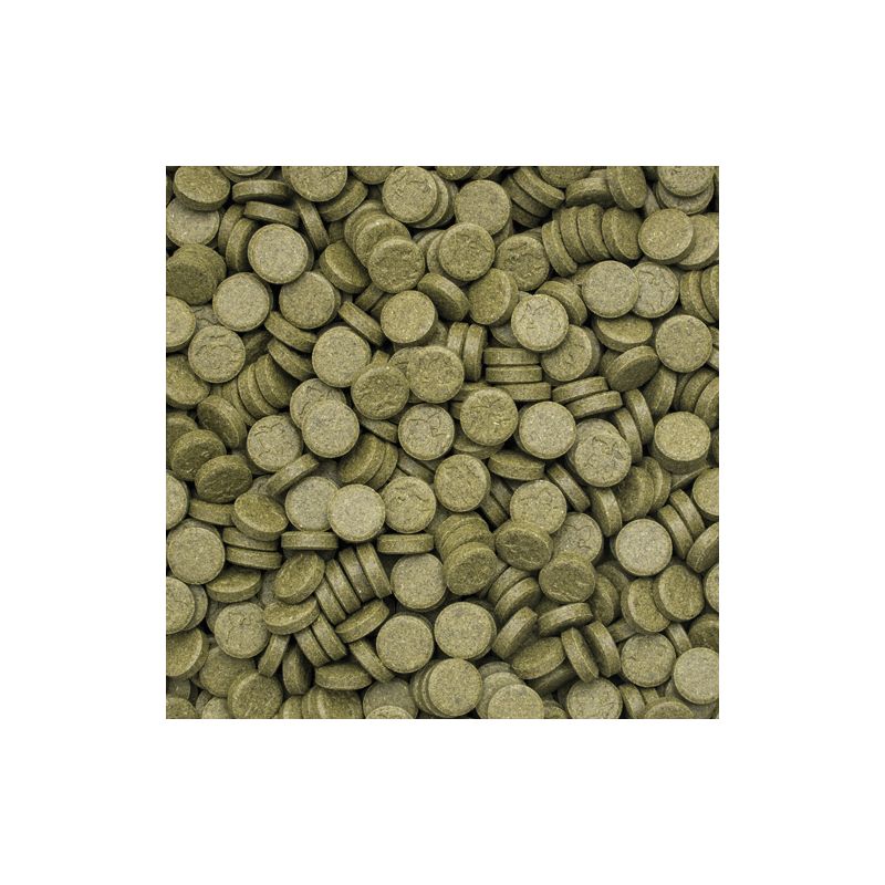 3-ALGAE TABLETS A sont des tablettes adhésives, riches en algues, destinées à l'alimentation quotidienne de poissons herbivores dont le régime est basé sur des algues, et de poissons omnivores – en tant que nourriture supplémentaire. Les tablettes peuvent également être administrées à des crustacés d'eau douce et d'eau de mer. 3-ALGAE TABLETS A contient trois algues: chlorella (Chlorella vulgaris), et Ascophyllum nodosum et Laminaria digitata, auxquels on réfère comme étant des algues kelp. Des acides gras insaturés, de la protéine (riche en acides aminés essentiels) et des vitamines provenant de chlorella, en même temps que des éléments nutritifs macro et oligo provenant d'algues kelp (y compris iode, chrome, sélénium et fer) assurent aux poissons et aux crustacés une condition excellente et une croissance et vitalité intenses. Lors d'une alimentation régulière avec 3-ALGAE TABLETS A vous procurez à vos poissons une dose considérable de chlorophylle – le piment vert provenant de chlorella, qui est une source concentrée de chlorophylle. Le chlorophylle restreint le développement de bactéries indésirables dans la voie alimentaire, prévenant les infections. L'extrait d'aloès améliore l'immunité et stimule une flore bactérienne appropriée dans la voie gastro-intestinale. Grâce à ses caractéristiques fortifiantes 3-ALGAE TABLETS A est recommandé pour l'alimentation de poissons subissant une quarantaine ou convalescents et de nouveaux poissons ayant à s'acclimater à de nouvelles conditions de vie.