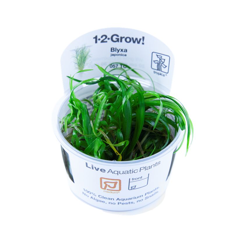 Blyxa ressemble à de l’herbe très souple qui se balance dans le courant d’eau de l’aquarium. Elle apporte une dynamique comparée à d’autres plantes plus robustes.