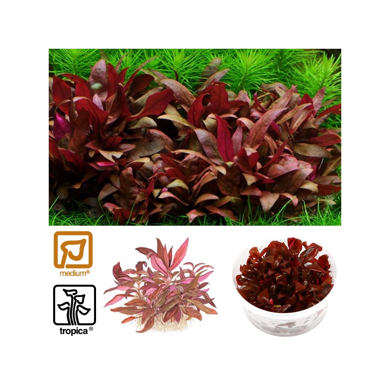 Cette variété miniature d'Alternanthera se démarque par sa croissance compacte et modérée. Elle convient particulièrement bien aux petits aquariums. Si on la pince de manière régulière, on peut même obtenir un tapis dense de couleur pourpre et d'environ 5 cm de hauteur. Un bon éclairage est requis tout comme un apport de CO2.