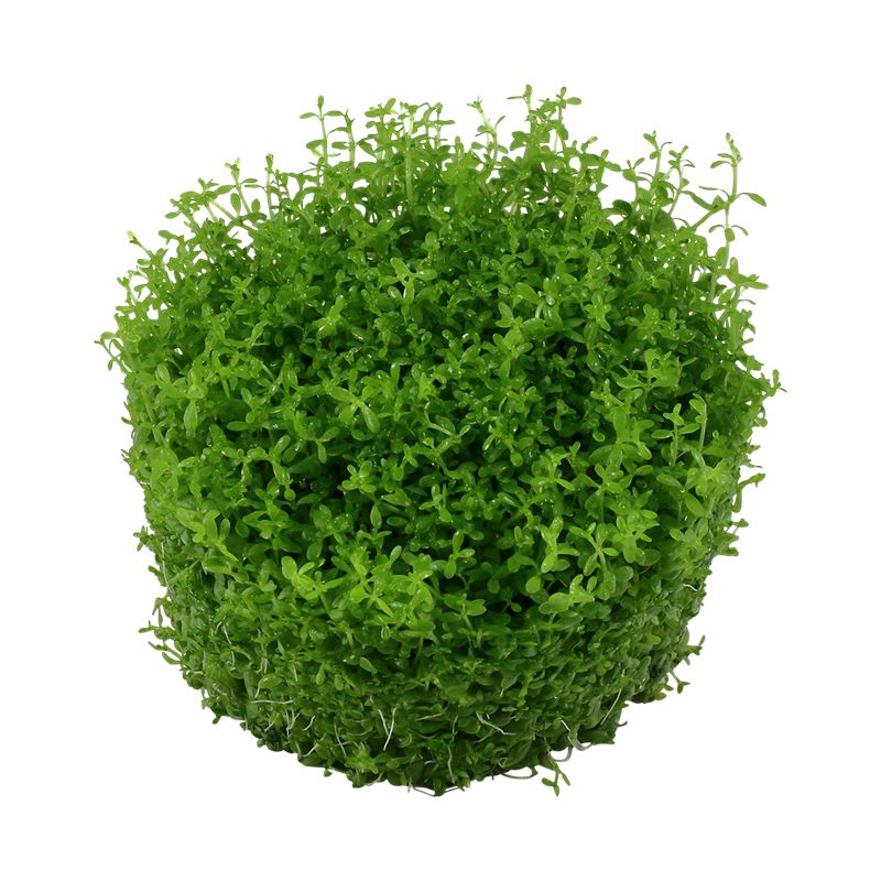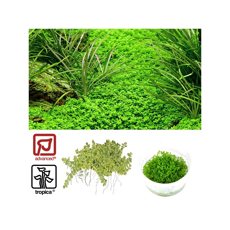 Avec ses petites feuilles rondes d'à peine quelques millimètres de diamètre, Hemianthus callitrichoides, qui compte parmi les plus petites plantes aquatiques qui existent, se propage sur le fond de l'aquarium. Plantée par petites bottes avec quelques centimètres d'intervalle, elle est capable de tapisser complètement le sol du bac en un rien de temps. Hemianthus callitrichoides est une plante de premier plan séduisante pour petits aquariums. Originaire de Cuba à l'ouest de la Havane.
