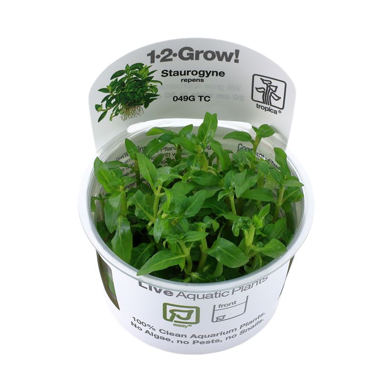 La plante à tige Staurogyne repens est une plante verte, compacte et robuste d'avant-plan en aquarium, originaire du Rio Cristalino au sud de l'Amazonie au Brésil. L'espèce la plus proche en aquariophilie est l'Hygrophila, mais la Staurogyne se différentie avec sa forme compacte en forme de buisson et ses plus petites feuilles. La tige atteint 5-10 cm de haut sur 3-4 cm de large. Lors de la plantation, pincer et repiquer les pousses les plus grandes de la plante afin que la Staurogyne forme de nouvelles pousses horizontales à la base.