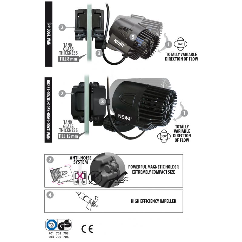 NeWa New-Wave® 2 pompe de brassage pour aquarium (800/1900l/h)