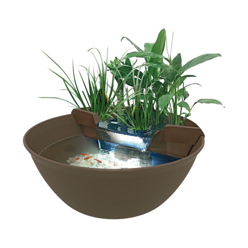 Le Mini Pond de SuperFish est un superbe ajout à tout jardin, patio, balcon ou espace intérieur. Grâce à la pompe intégrée avec filtre à plantes, le mini bassin est idéal pour les plantes aquatiques et les petits poissons. Vous rêvez d'un bassin mais vous n'avez pas l'espace nécessaire ? Le Mini Pond de SuperFish est un superbe ajout à tout jardin, patio, balcon ou espace intérieur. Grâce à la pompe intégrée avec filtre à plantes, le mini bassin est idéal pour les plantes aquatiques et les petits poissons. Livré complet composé d'un bac robuste avec pompe à eau, un filtre à plantes avec cascade et un mode d'emploi, disponible en gris et en marron. Un éclairage LED économe en énergie pour la cascade et un meuble sont disponibles en option auprès de votre revendeur ! Dimensions, D 60 cm x H 25 cm, capacité d'environ 30 litres, pompe 20W/1400 L/h.
