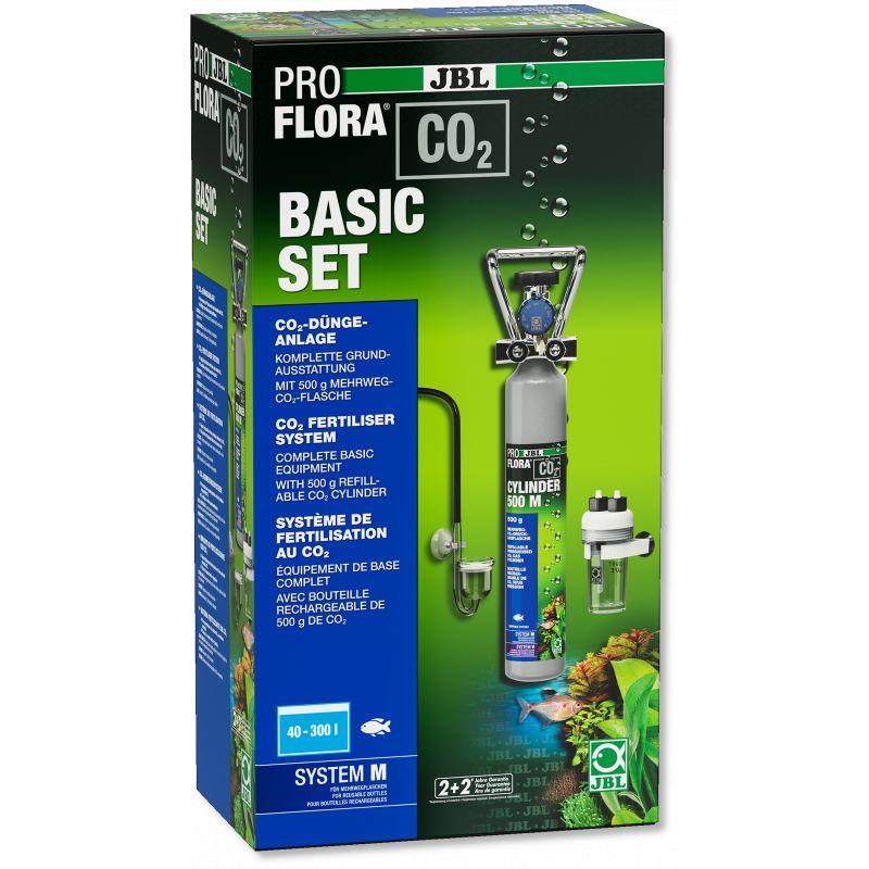 Contenu : bouteille de 500 g de CO2 rechargeable avec fixation murale, détendeur, 3 m de tuyau, compte-bulles avec clapet antiretour, diffuseur en céramique, test permanent avec réactifs, 2 engrais de 100 ml, 1 engrais journalier de 10 ml.