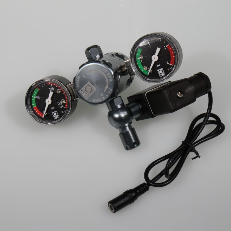 Aucun glissement du tuyau grâce aux raccords vissés, l'antiretour empêche la pénétration d'eau dans la bouteille. Manomètres affichant la pression dans la bouteille et la pression de travail. Détendeur pour bouteilles de CO2 jetables et rechargeables