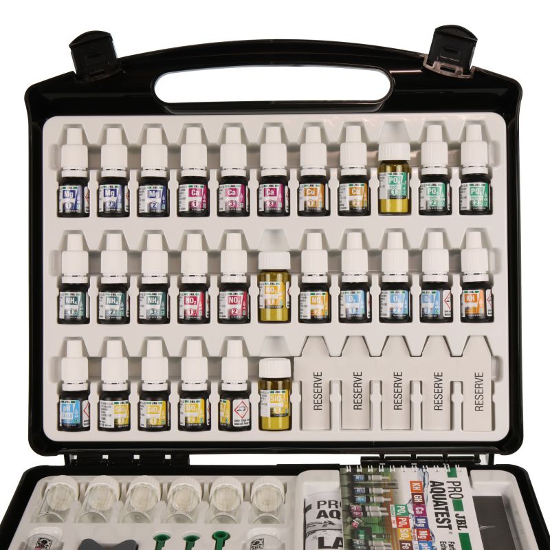 Les bons paramètres d’eau dans l’aquarium dépendent de la population de poissons et des plantes présentes. Même si l’eau paraît claire, elle peut être polluée. Si les paramètres sont mauvais, des maladies ou des algues peuvent apparaître dans l'aquarium. Pour qu’un aquarium soit sain et présente des conditions de vie proches de la nature, il est important de contrôler et d’adapter régulièrement les paramètres de l’eau. Avec les tests d'eau JBL, vous pouvez déterminer rapidement, facilement et avec beaucoup de précision tous les paramètres importants de l'eau.