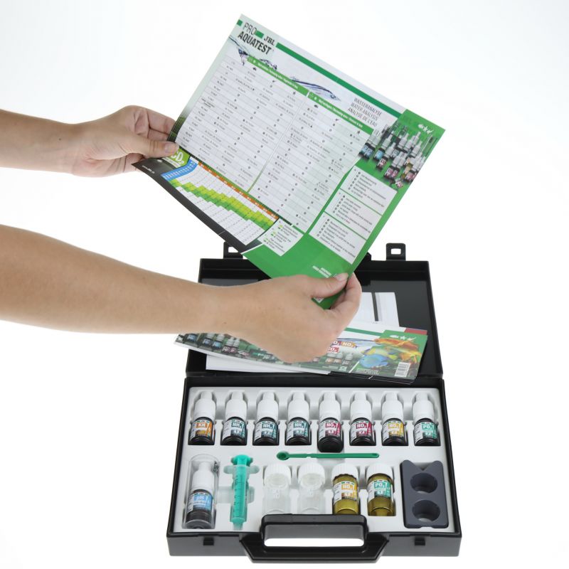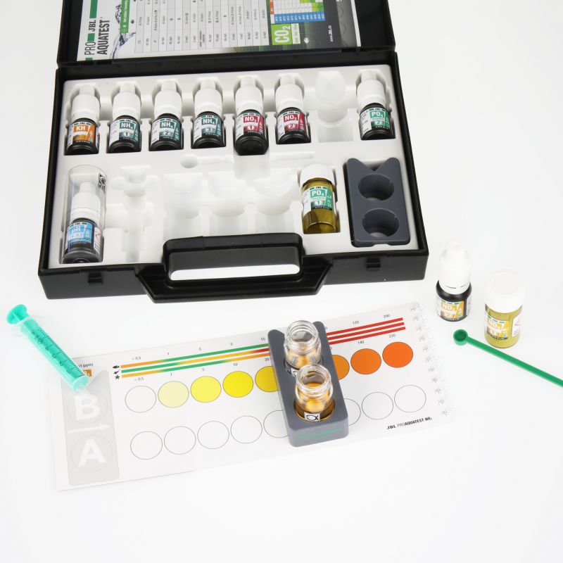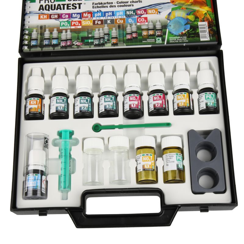 Dans la phase initiale d'un aquarium marin, ces paramètres d'eau devront être mesurés entre une fois par jour et une fois par semaine pour voir si l'aquarium fonctionne bien et à quel moment on va pouvoir y mettre des animaux. La dureté carbonatée indique le niveau de stabilité du pH de l'eau et devrait se situer entre 7 et 10 °dKH. L'ammonium est la première étape de la dégradation de l'azote et si le pH est supérieur à 7, elle va se transformer de plus en plus en ammoniaque toxique. La teneur en ammonium ne doit pas dépasser 0,25 mg/l max. Le taux de nitrites indique si ce poison pour les poissons est présent dans l'aquarium. Le taux de nitrites devrait toujours être inférieur à 0,2 mg/l. Les nitrates et les phosphates servent de nourriture aux algues. Les taux de nitrates supérieurs à 20 mg/l et ceux de phosphates supérieurs à 0,1 mg/l peuvent entraîner une prolifération massive des algues. La présence de faibles quantités de nitrates et de phosphates permet à de nombreuses espèces de coraux de nettement mieux pousser, car des algues endosymbiotiques (zooxanthelles) vivent dans leurs tissus.