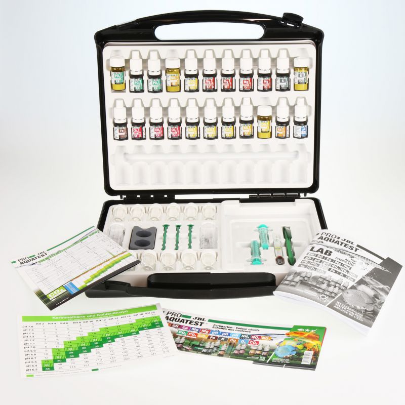 Les paramètres d’eau dans l’aquarium dépendent de la population de poissons et des plantes en présence. Même si l’eau paraît claire, elle peut être polluée. Si les paramètres ne sont pas bons, des maladies ou des algues peuvent apparaître dans l'aquarium. Pour qu’un aquarium soit sain et présente des conditions de vie proches de la nature, il est important de contrôler et d’adapter régulièrement les paramètres de l’eau. Avec le JBL Testlab ProScape, vous pouvez déterminer les 9 principaux paramètres d’eau de votre aquarium planté.