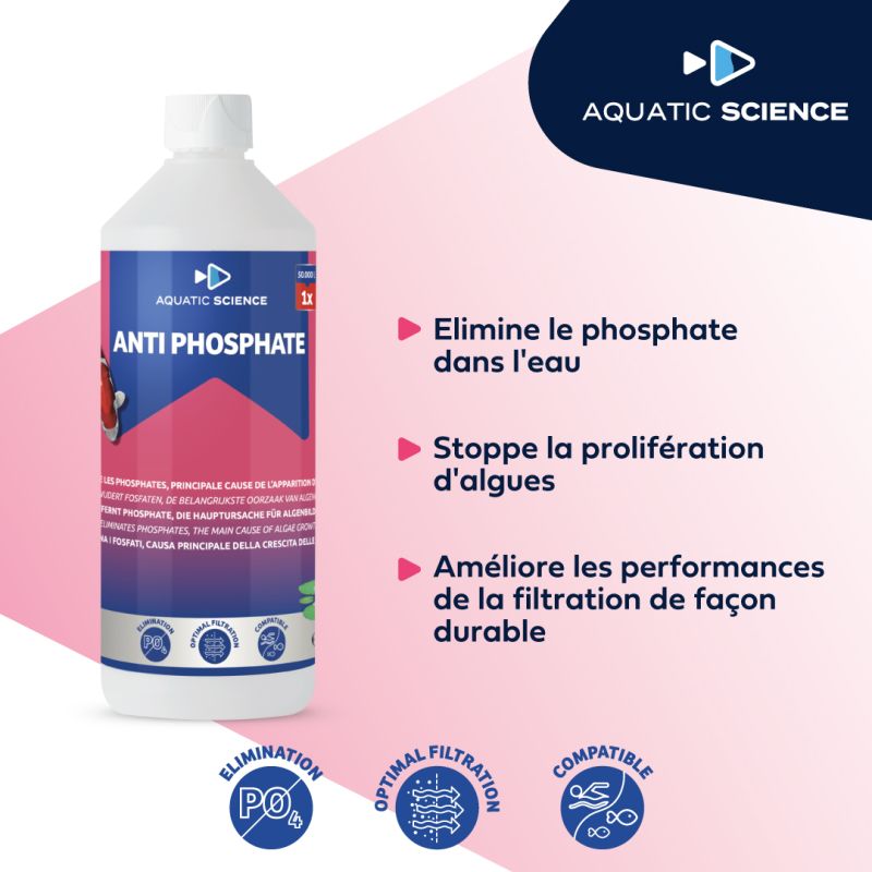 Le phosphate est source du développement des algues filamenteuses et de l’eau verte. Anti Phosphate aide à obtenir une eau limpide, une réduction des algues et améliore les performances de la filtration de façon durable.