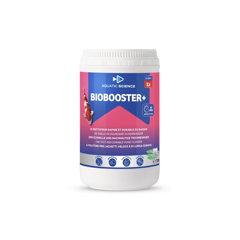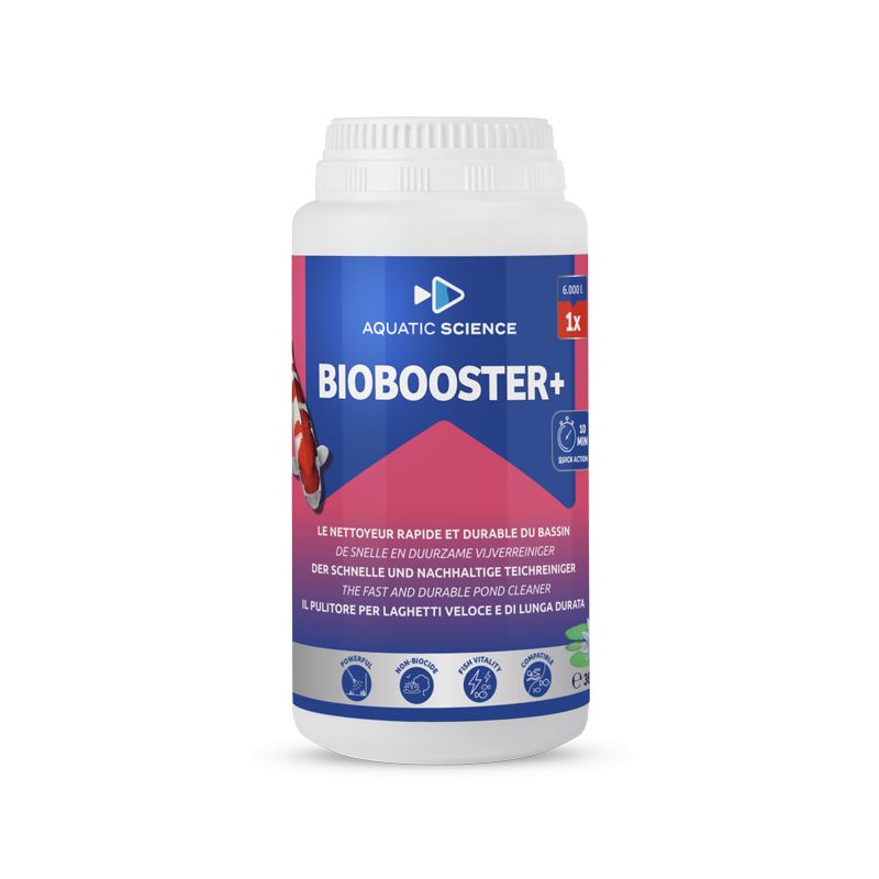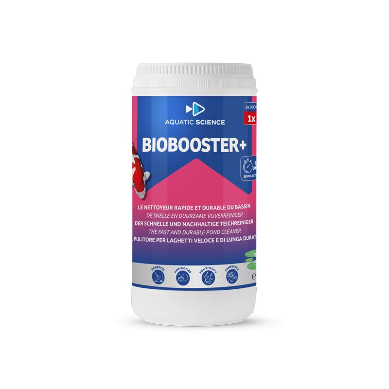 Biobooster+ est une formulation destinée à doper l’activité des micro-organismes bénéfiques au bassin. L’effet sur les déchets organiques est visible déjà après quelques heures. Biobooster+ va ensuite amplifier le développement des bactéries, aboutissant à l’élimination des déchets. Sans produits néfastes pour la filtration, l’environnement ou les poissons qui n’en sont que plus vigoureux et sains.
