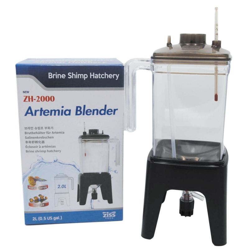 Le mélangeur Artemia Ziss Aqua ZH-2000 est le parfait set de culture d'artémias pour les aquariums et les cultivateurs! Avec sa conception unique, le mélangeur ZH-2000 Artemia facilite la culture des œufs d'artémias et garantit un pourcentage d'éclosion élevé. Le kit de culture comprend un grand récipient en plastique (capacité de 2 litres) avec poignée, une base en plastique robuste, un thermomètre avec joint torique, une pierre à air Ziss Aqua et un tube pour l'intérieur du récipient, un couvercle, une valve unique pour laisser sortir l'Artemia le récipient sans aucun tracas et une pipette avec laquelle l'Artemia peut être alimenté.